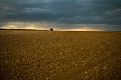 Después de cincuenta años viviendo en la ciudad que nos vio nacer, y veinticinco de ellos en el mismo barrio, centro geométrico y vital de Madrid, nos parece llegado el momento, con la primavera de 2009, de marchar a vivir estas llanuras infinitas y sentir el contacto con el cielo y la tierra en estado puro. El deseo, cada vez más intenso, de vivir cerca de la naturaleza y a un ritmo más acompasado a ella, junto con la añoranza de la ciudad que fue y cierta extrañeza ante la que hoy es, nos han animado a dar un paso que venía fraguándose quedamente. Curiosa ironía, ahora que acabamos de terminar nuestro trabajo más elaborado sobre Madrid. (Aún así, mantenemos un pie en nuestro viejo barrio, como no podía ser de otro modo).